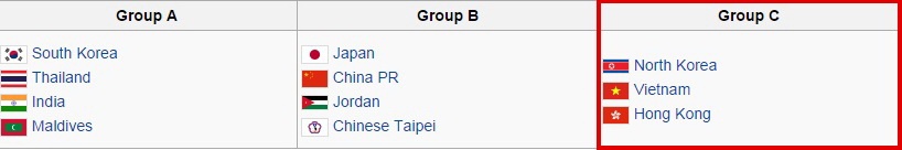 | ĐT nữ Việt Nam nằm ở bảng C cùng Triều Tiên và Hong Kong. |