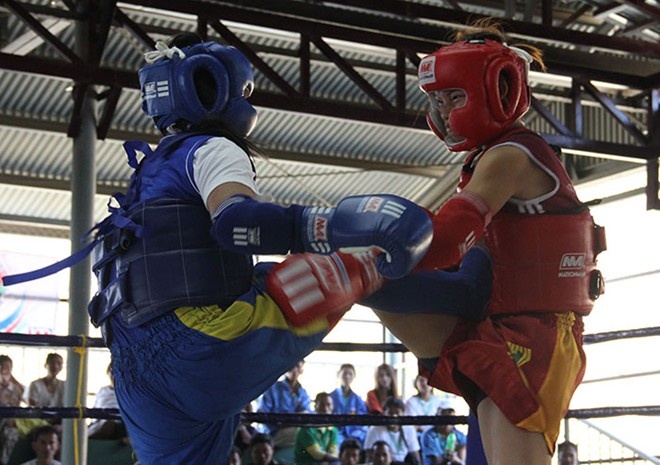 - Hứa Lê Cẩm Xuân, Mai Thị Kim Thùy thi Song luyện kiếm.