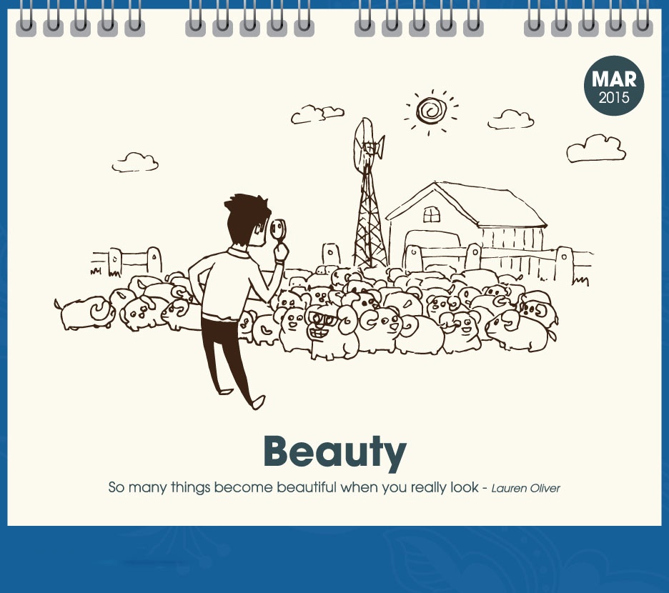 Ý tưởng của lịch được chia theo cảm xúc công việc theo từng tháng, từng mùa trong năm. Ví như, từ tháng 1 đến tháng 3 xoay quanh chủ đề mùa xuân, mùa mang lại niềm vui, hạnh phúc, tình yêu, sự tươi đẹp (happiness, love, beauty).
