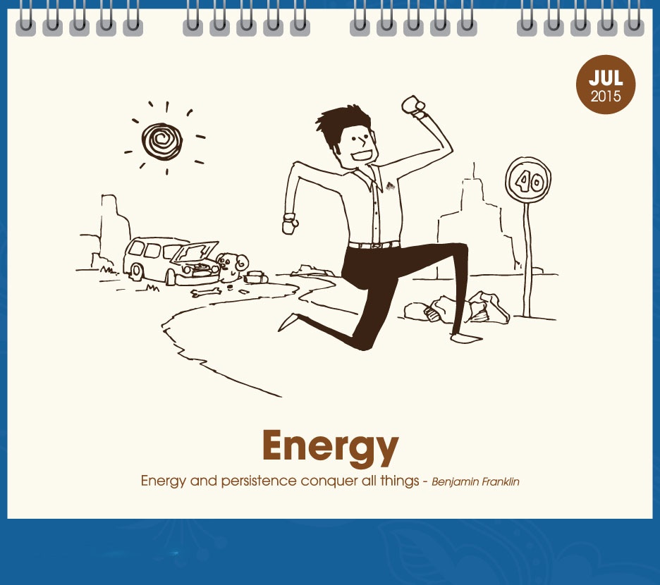 | Các chủ đề của tháng như cần thêm năng lượng, vượt qua thử thách, cần phải có sự phối hợp kết nối với các bộ phận khác (energy, challenge, connection). |