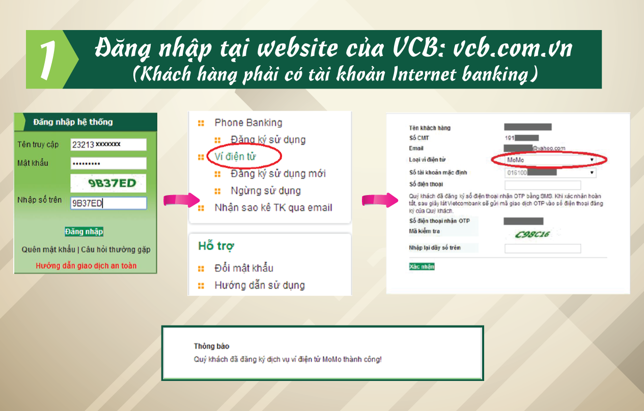 Tham khảo thêm tại: momo.vn/lienketvcb hoặc gọi (08)39917199