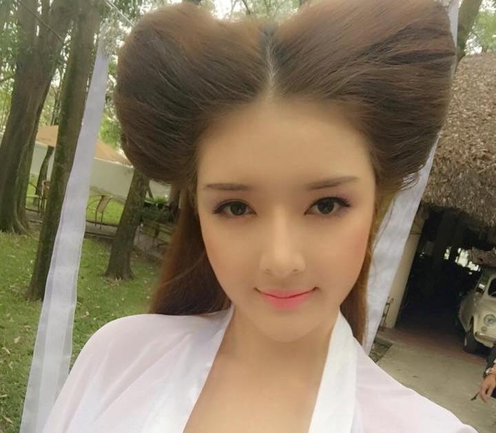 "Nhiều người cho rằng Tiểu Long Nữ trong Thần điêu đại hiệp 2014 bị dìm hàng không thương tiếc vì mái tóc "đùi gà" xấu xí, nên mình cũng muốn xem thử kiểu tóc này có thể làm khó mình đến đâu. Sau khi hoá trang xong, mình thấy cũng đâu có tệ, có lẽ "cô Long" thật gặp xui nên mới bị số đông soi kỹ đến thế" - hot girl chia sẻ.