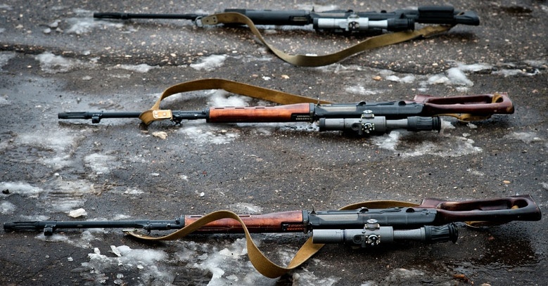 Súng trường bắn tỉa của quân đội Nga. Ngoài vũ khí chính, các xạ thủ sẽ mang theo các loại vũ khí khác như súng lục và dao. Họ cũng sở hữu những thiết bị hỗ trợ nhiệm vụ bắn tỉa như ống nhòm, ống ngắm, các thiết bị trinh sát laser. |