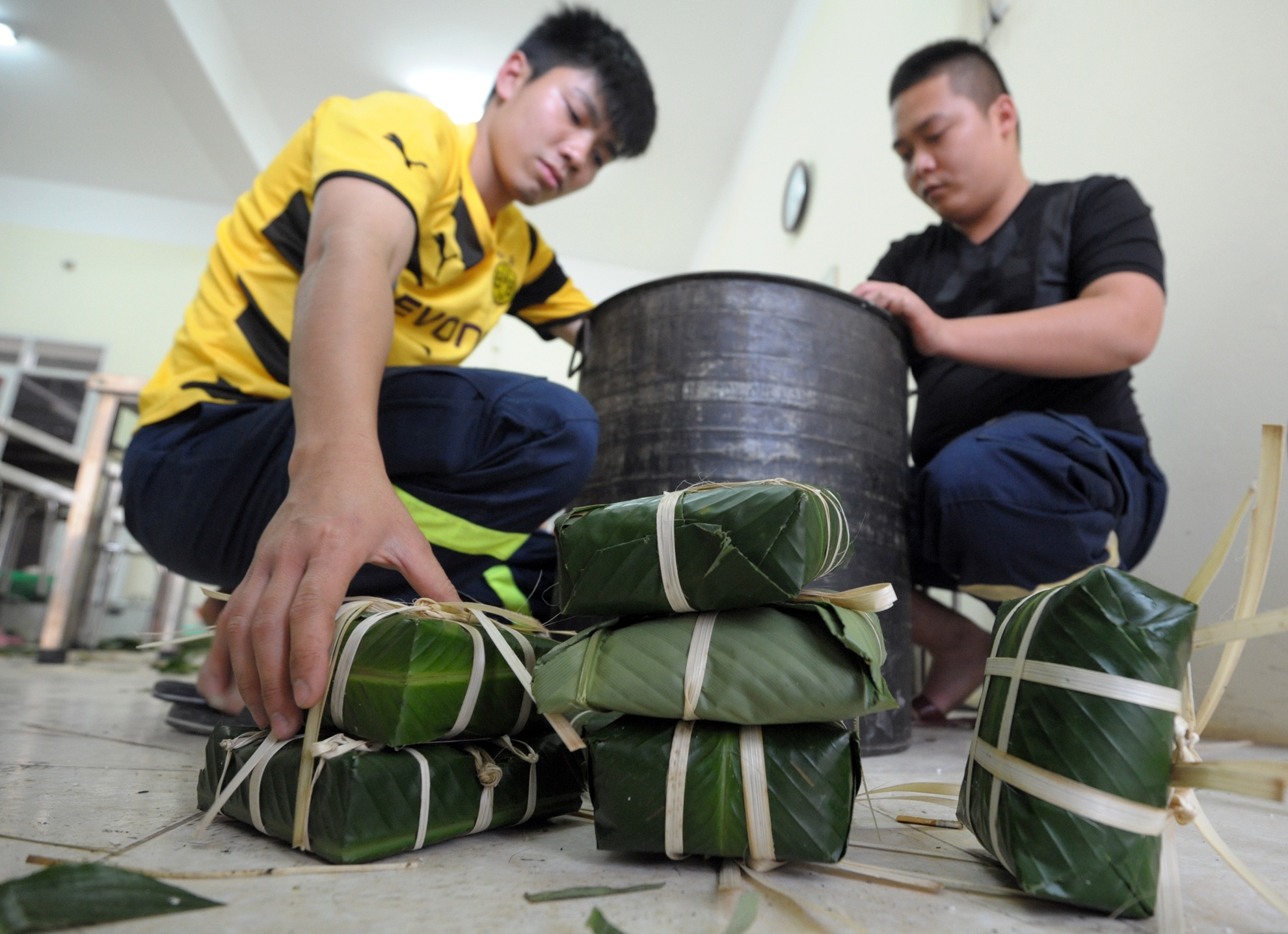 Kế hoạch của đơn vị đề ra sẽ gói 100 chiếc với 40 kg gạo, 10 kg thịt, 10 kg đỗ và 500 chiếc lá dong. Mỗi người phải hoàn thiện 3 cái, trong đó dành ra một chiếc mang về gia đình ngay sau kỳ nghỉ Tết để làm quà.