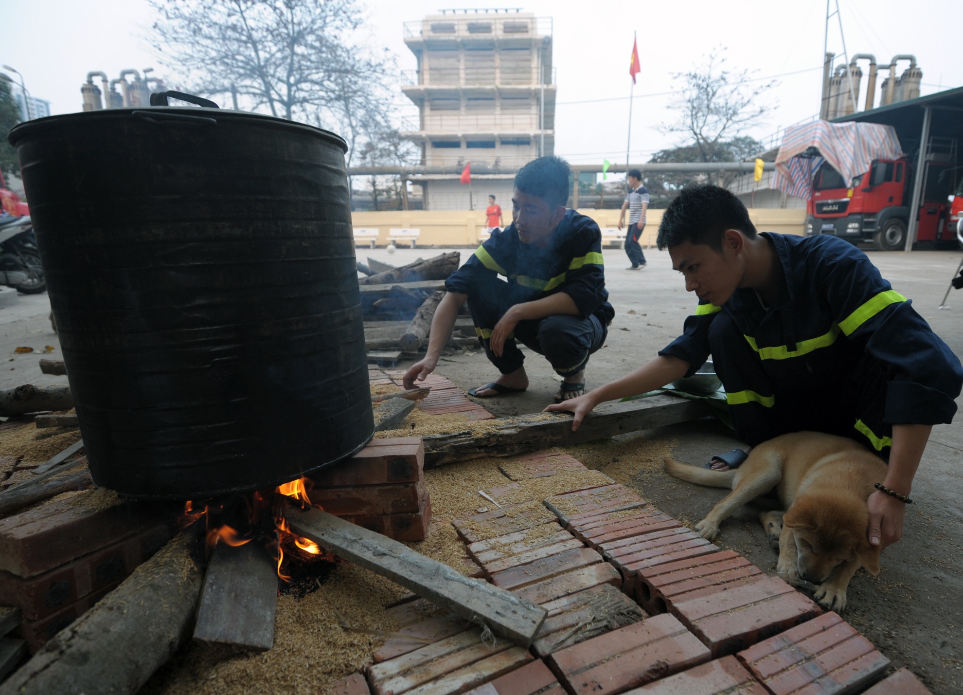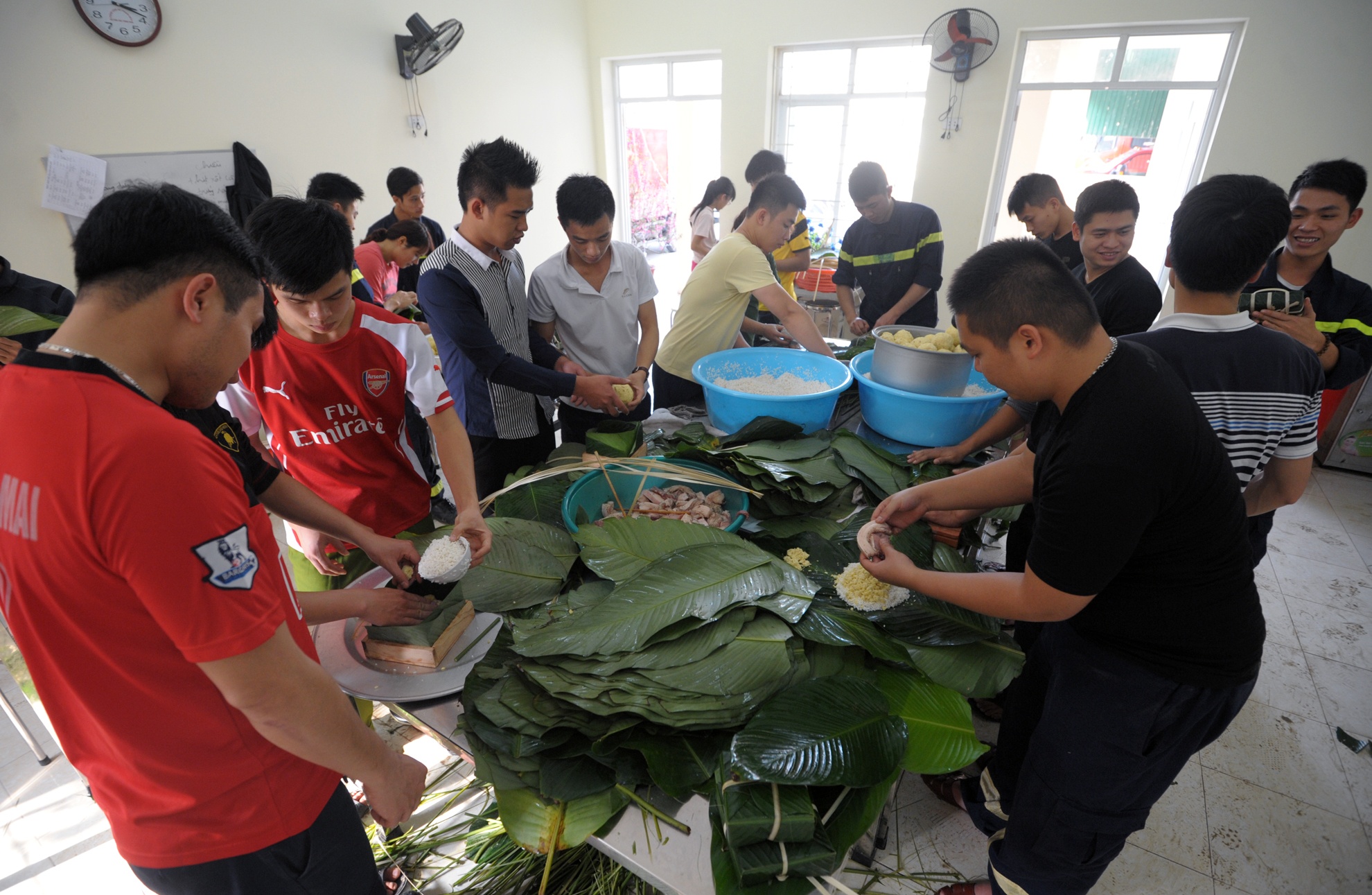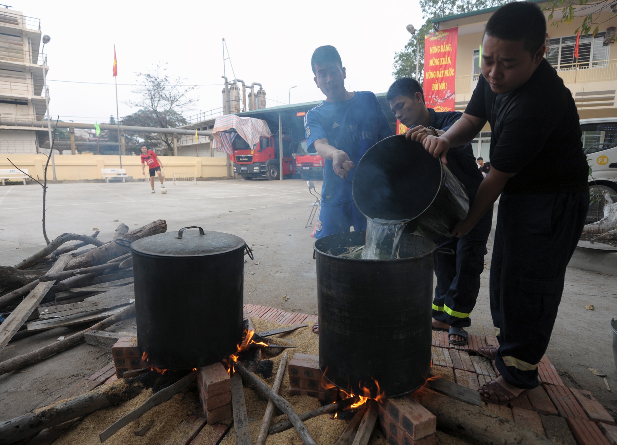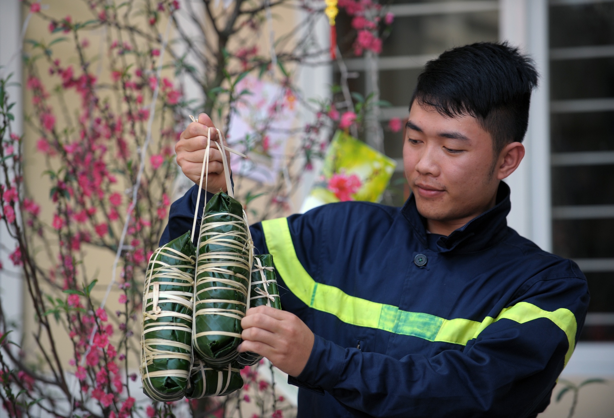 Sau bữa cơm tất niên ngày 28 Tết, hơn 30 cán bộ, chiến sĩ cảnh sát PCCC (đội chữa cháy chuyên nghiệp Thanh Xuân, Hà Nội) đã có mặt tại bếp ăn tập thể để cùng nhau gói bánh chưng ăn Tết. Đây cũng là dịp để anh em gần gũi động viên nhau khi phải xa quê hương. Dịp này, toàn đội đảm bảo 100% nhân lực ở lại trực chiến, không ai được về nhà.
