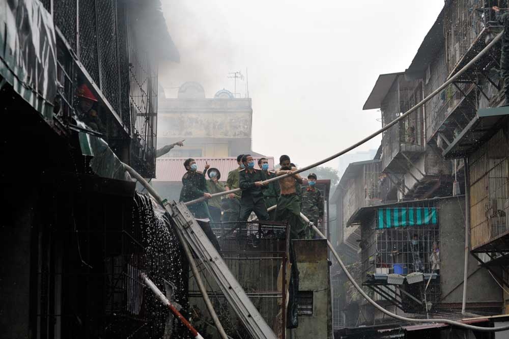 | Khu vực đám cháy xảy ra từ tầng 3 đến tầng 5 một tòa nhà nơi có khá nhiều khu tập thể liền kề nhau. Đường xá vô cùng khó khăn cho xe chữa cháy di chuyển vào hiện trường. |