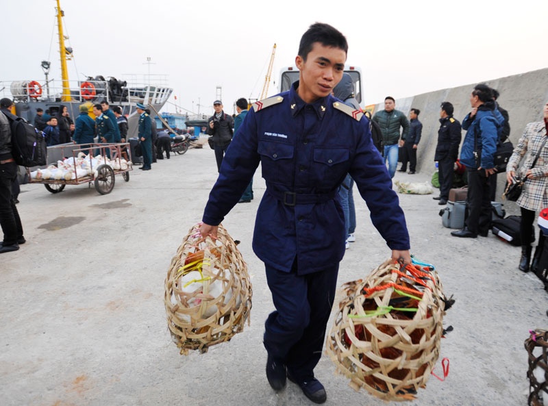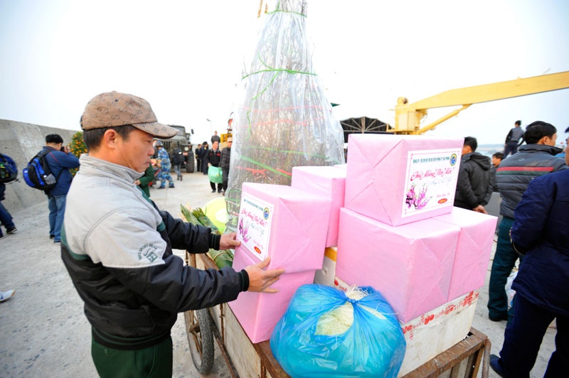 Đây là nơi làm nhiệm vụ của lực lượng Bộ tư lệnh vùng 1 Hải quân. Những ngày này các anh liên tục nhận hàng phục vụ Tết từ đất liền chuyển vào.