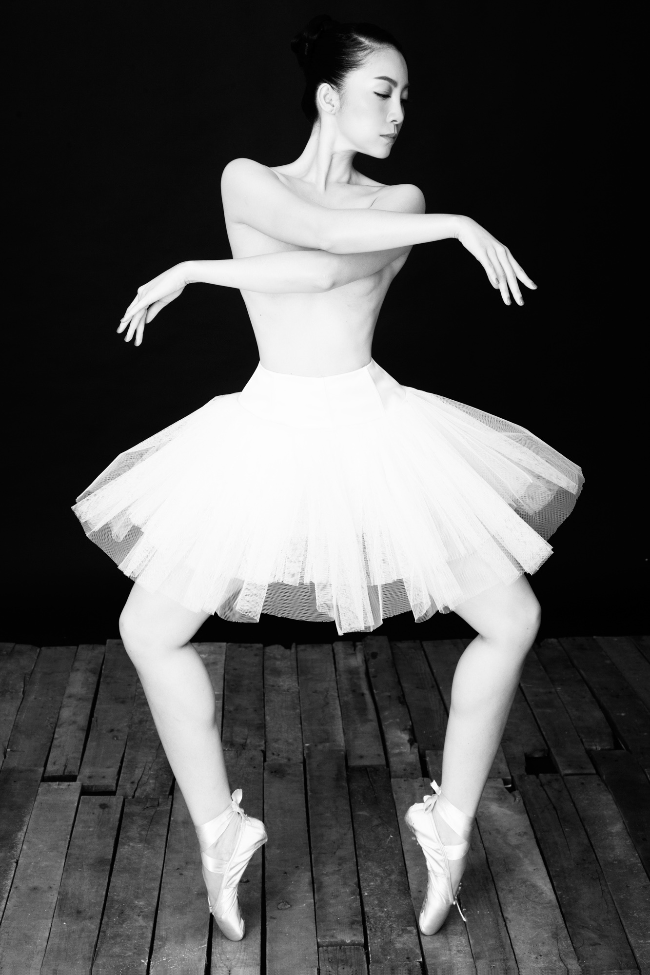 Trong bộ ảnh mới được chụp tại phòng tập, Linh Nga không ngại thể hiện ý tưởng táo bạo. Cô để ngực trần, nhảy múa trước ống kính nhiếp ảnh gia. Hình ảnh gam màu trắng đen thêm phần ấn tượng.