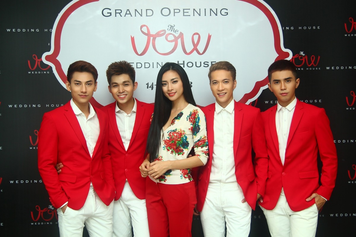 Diễn viên Ngô Thanh Vân cùng 4 chàng trai nhóm 365 đến chúc mừng bạn thân.