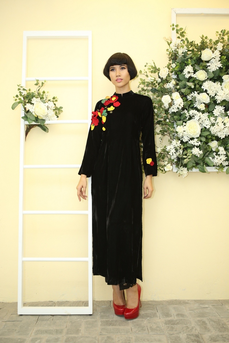 Trang Lạ nền nã trong một thiết kế của Thủy Nguyễn. Mẫu áo dài cách tân mang những nét cổ điển của thập niên 60.