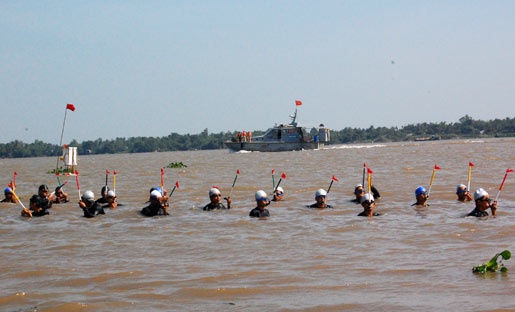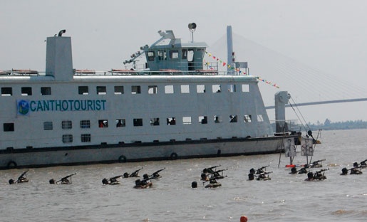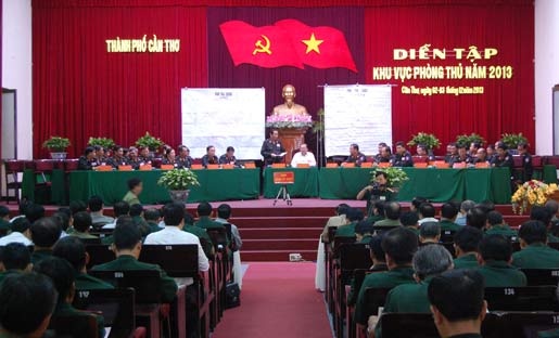 Sáng 2/12, tại thành phố Cần Thơ bắt đầu diễn tập Khu vực phòng thủ năm 2013, trong đó có tình huống giả định giải cứu con tin trên tàu du lịch bị khống chế.