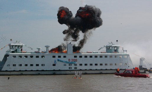 | Tàu du lịch bị gài thuốc nổ và bùng cháy. |