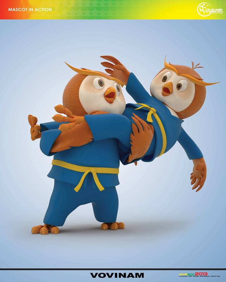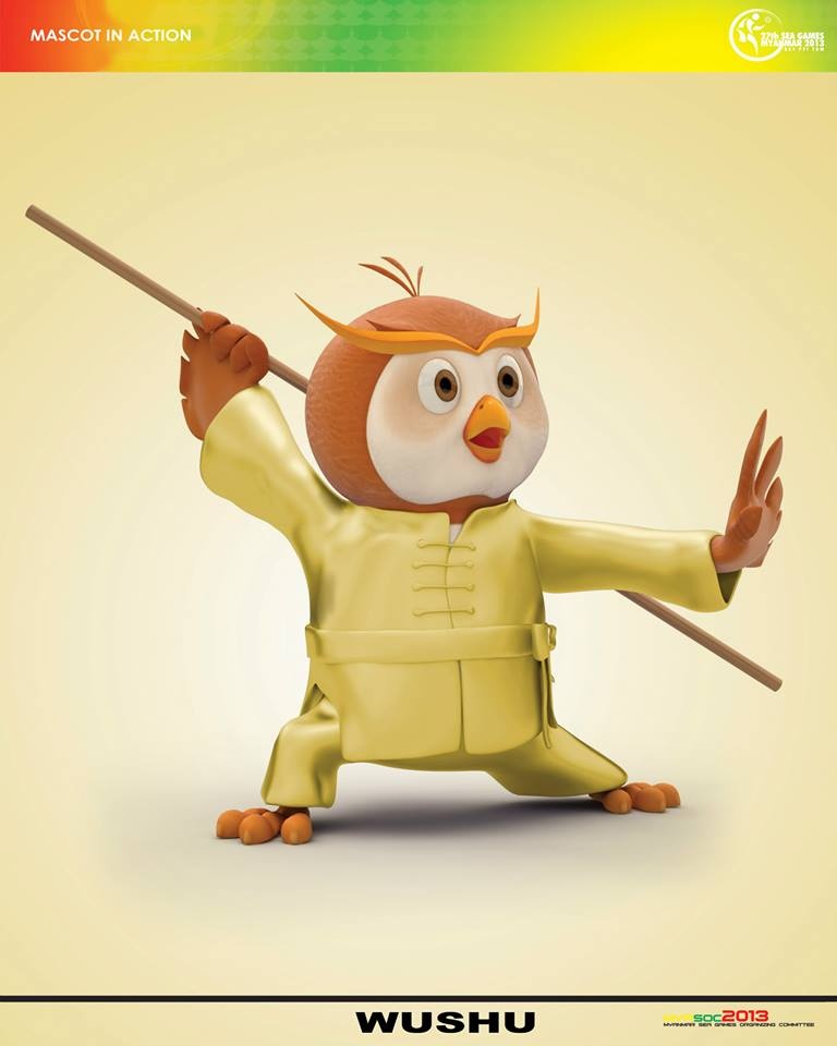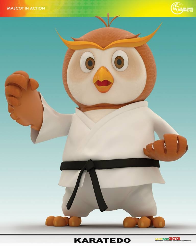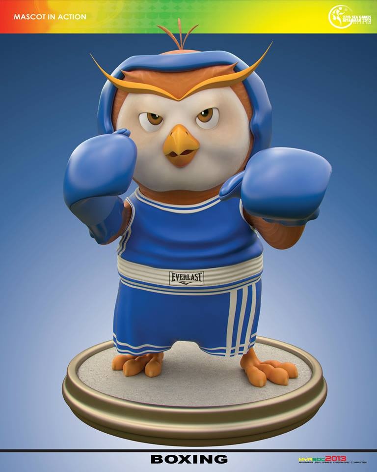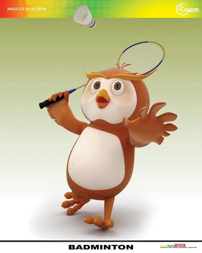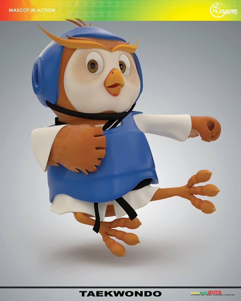 Với tạo hình chú chim cú đáng yêu và nụ cười thân thiện, nước chủ nhà Myanmar mong muốn gửi tới lời chào nồng nhiệt, sự thân thiện, tình hữu nghị tới toàn bộ các nước anh em trong khu vực. Dưới đây, bộ đôi linh vật sẽ hóa thân thành các VĐV tham gia tranh tài tại 33 bộ môn thi đấu năm nay. |