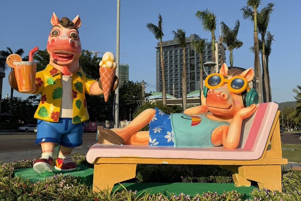 Linh vật ngựa trên khoác lên mình trang phục mang đậm không khí nghỉ dưỡng với mũ rộng vành, kính râm, áo họa tiết mùa hè, phối thêm phụ kiện. "Tạo hình này mang lại cảm giác hài hước, đúng tinh thần thành phố biển", anh Thuật chia sẻ với Tri Thức - Znews.