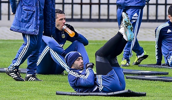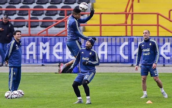 Các cầu thủ Argentina tập luyện tích cực chuẩn bị cho trận chung kết gặp chủ nhà Chile lúc 3h ngày 5/7.