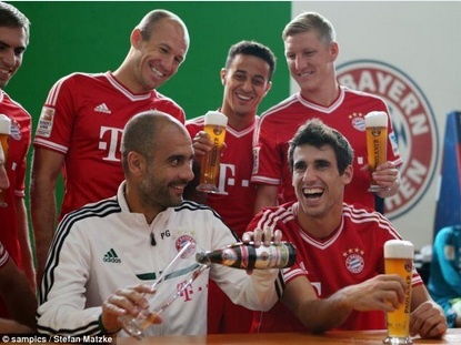 | Thầy trò Pep Guardiola vừa thưởng thức bia vừa chứng kiến đối thủ của mình tại Champions League sắp tới bị Liverpool quần cho tơi tả. (Ảnh: Twitter Arsenal) |