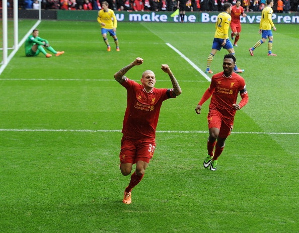 | Niềm vui của Skrtel sau khi lập cú đúp cho Liverpool. (Ảnh: Getty Images) |