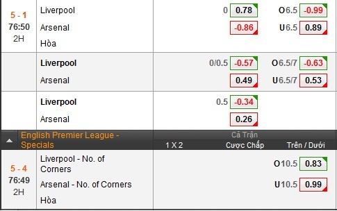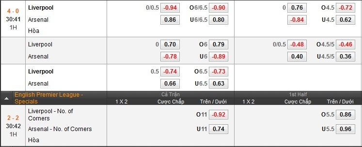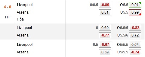 Hiệp 1 trận đấu giữa Liverpool và Arsenal kết thúc với tỷ số 4-0 tạm nghiêng về đội chủ nhà.