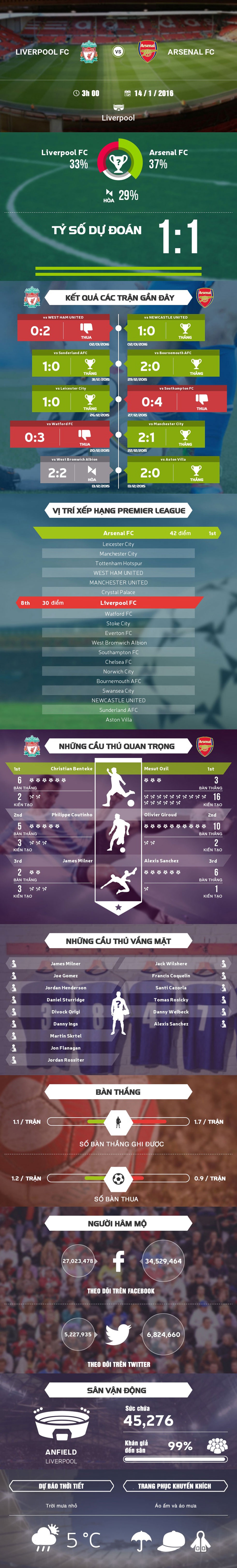 Arsenal thua 1-5 ở Anfield vào năm 2014, nên thầy trò huấn luyện viên Arsene Wenger quyết lấy lại danh dự trong trận làm khách trước Liverpool thuộc vòng 21 Premier League mùa này.