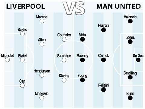 Nhìn vào hàng tiền vệ có phần chậm chạp của M.U, The Kop hoàn toàn có đủ cơ sở sử dụng lại chiêu này. Chỉ cần Philippe Coutinho hoặc Raheem Sterling sử dụng tốc độ đột phá, khu vực trước vòng cấm địa M.U sẽ là mảnh đất màu mỡ để những chuyên gia bắn xa bên phía Lữ đoàn đỏ khai hỏa. David de Gea chắc chắn sẽ phải trải qua một ngày thi đấu hoạt động hết công suất.