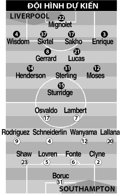 Các chuyên gia gợi ý Liverpool: Ngăn đối thủ thực hiện các đường chuyền dài, và khi đó Southampton sẽ trở nên vô dụng. Theo thống kê, Southampton đang là CLB dùng nhiều đường chuyền dài nhất Premier League (84 đường chuyền) và phần lớn những cú phất bóng đều tìm đến 2 cánh, rồi được tiền vệ đỡ lại, chuyền vào trong cho Lambert. Rất đơn giản và dễ bắt bài.