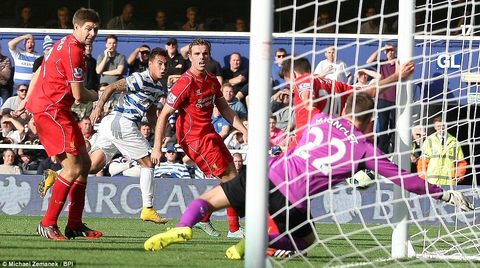 | Lối chơi phòng ngự lỏng lẻo của The Kop cuối cùng cũng phải trả giá. Phút 87, tiền vệ vừa vào sân thay người, Eduardo Vargas đệm bóng cận thành gỡ hòa cho QPR. |