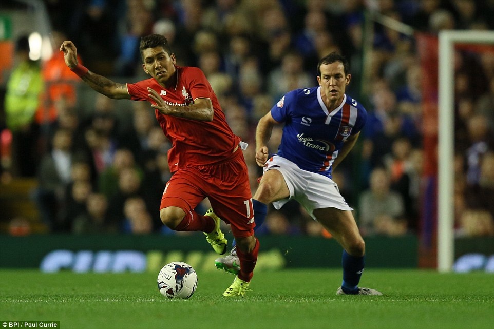 Huấn luyện viên Rodgers đưa ra sân đội hình Liverpool gồm nhiều cầu thủ trụ cột, trong đó có tân binh Roberto Firmino.