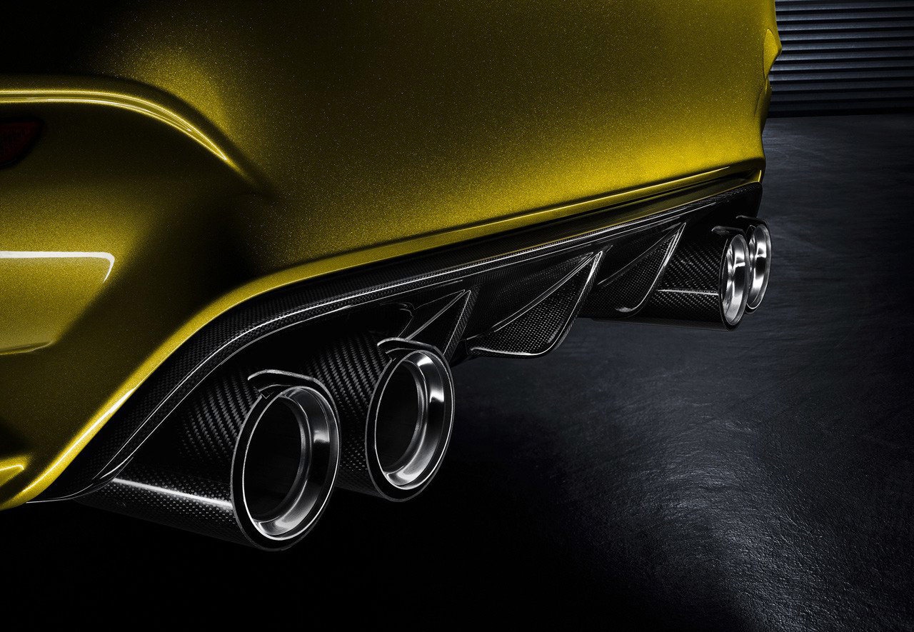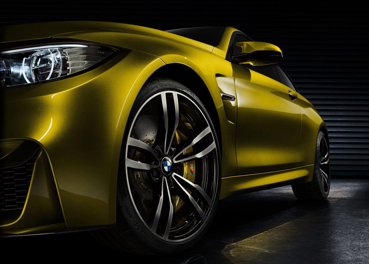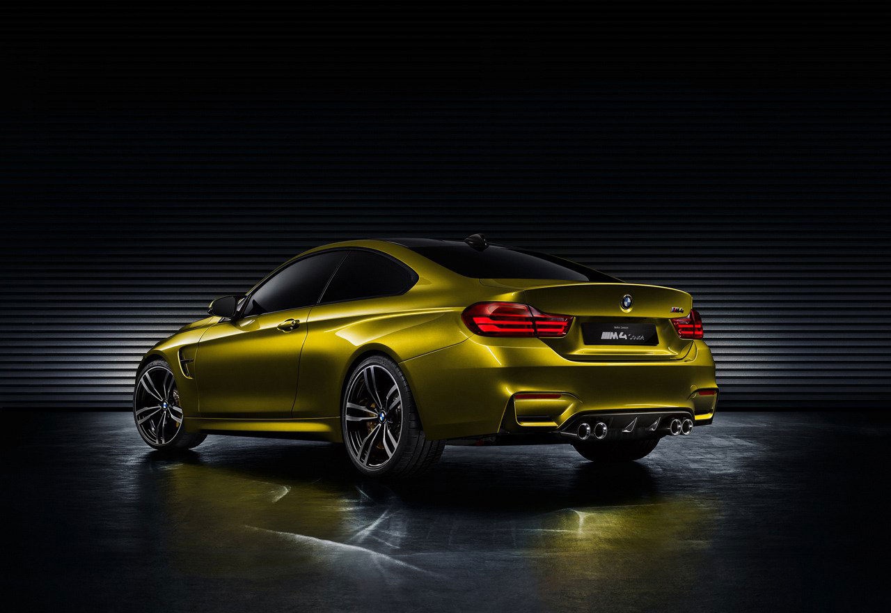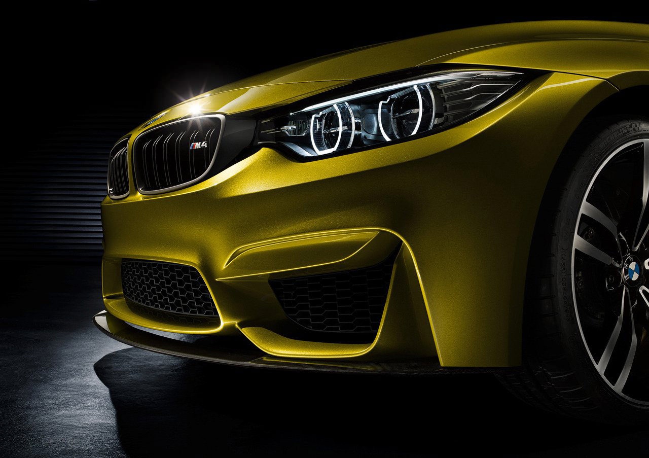 Phía đầu xe nổi bật với cụm đèn pha đôi hình tròn, sử dụng công nghệ LED. Bản concept BMW M4 coupe được trang bị bộ vành hợp kim kích thước 20 inch, 5 chấu và bộ phanh đĩa carbon-gốm.