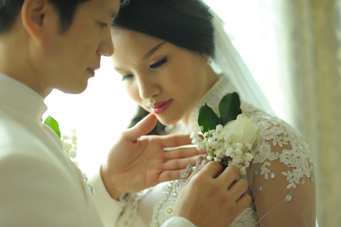 Tuy nhiên, tối 21/1, Dustin Nguyễn đã chính thức đưa nàng về dinh bằng một lễ cưới ấm cúng, sang trọng với những người thân và hoàn toàn bí mật với truyền thông.