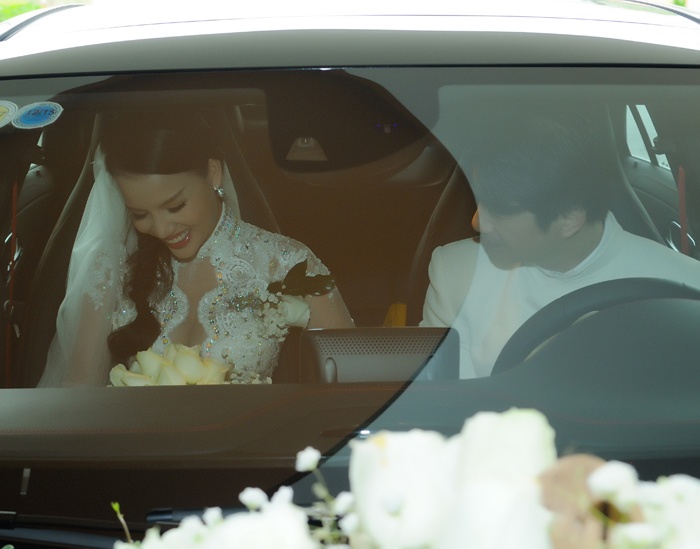 Cô dâu Bebe Phạm và chú rể Dustin Nguyễn chọn áo cưới, hoa cưới của nhà thiết kế Việt Hùng để rạng rỡ trong ngày vui trọng đại. Tóc cô dâu do Lâm Nguyễn thực hiện.