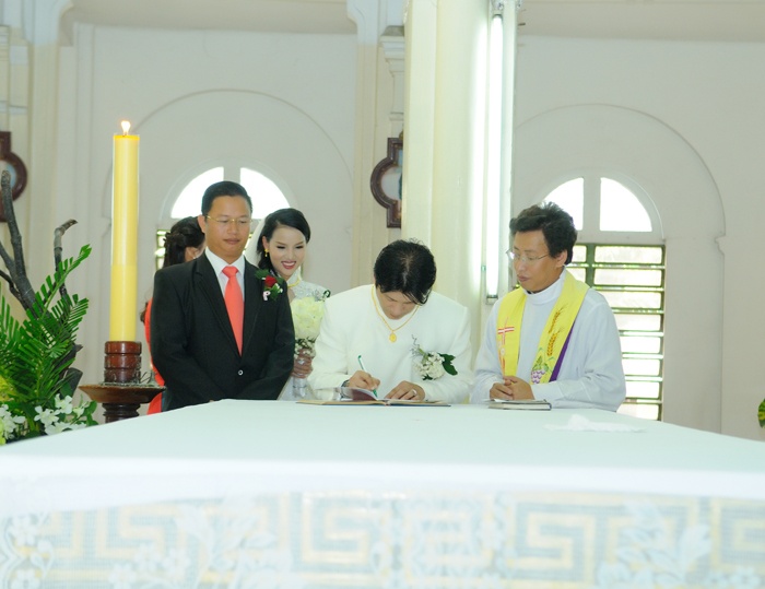 Hôn lễ được diễn ra tại nhà thờ Chợ quán và khách sạn Caravelle (TP HCM). Sự kín tiếng của cặp đôi đã giúp họ có một lễ cưới hoàn hảo như ý muốn.