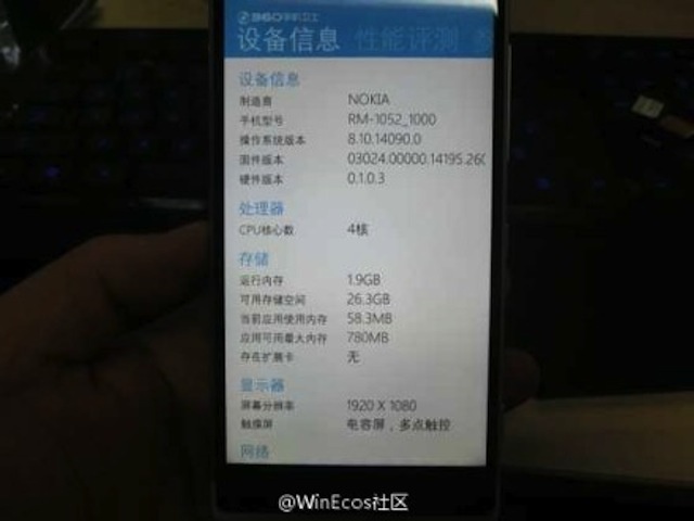 | Qua những hình ảnh rò rỉ ban đầu, có thể xác nhận Lumia 1030 sẽ có tên mã RM-1052, chip xử lý 4 nhân, RAM 2 GB, dung lượng lưu trữ trong 32 GB và màn hình Full HD. |