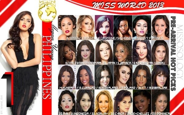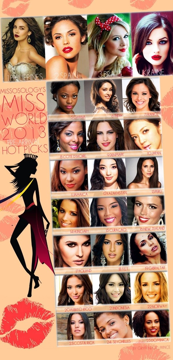 Danh sách những ứng viên được đánh giá cao nhất Miss World 2013 do Misso đăng tải.