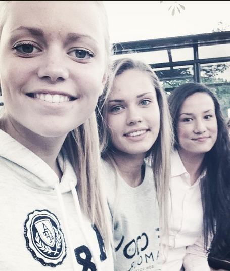 | Oda Burud chụp hình bên những người bạn thân. |