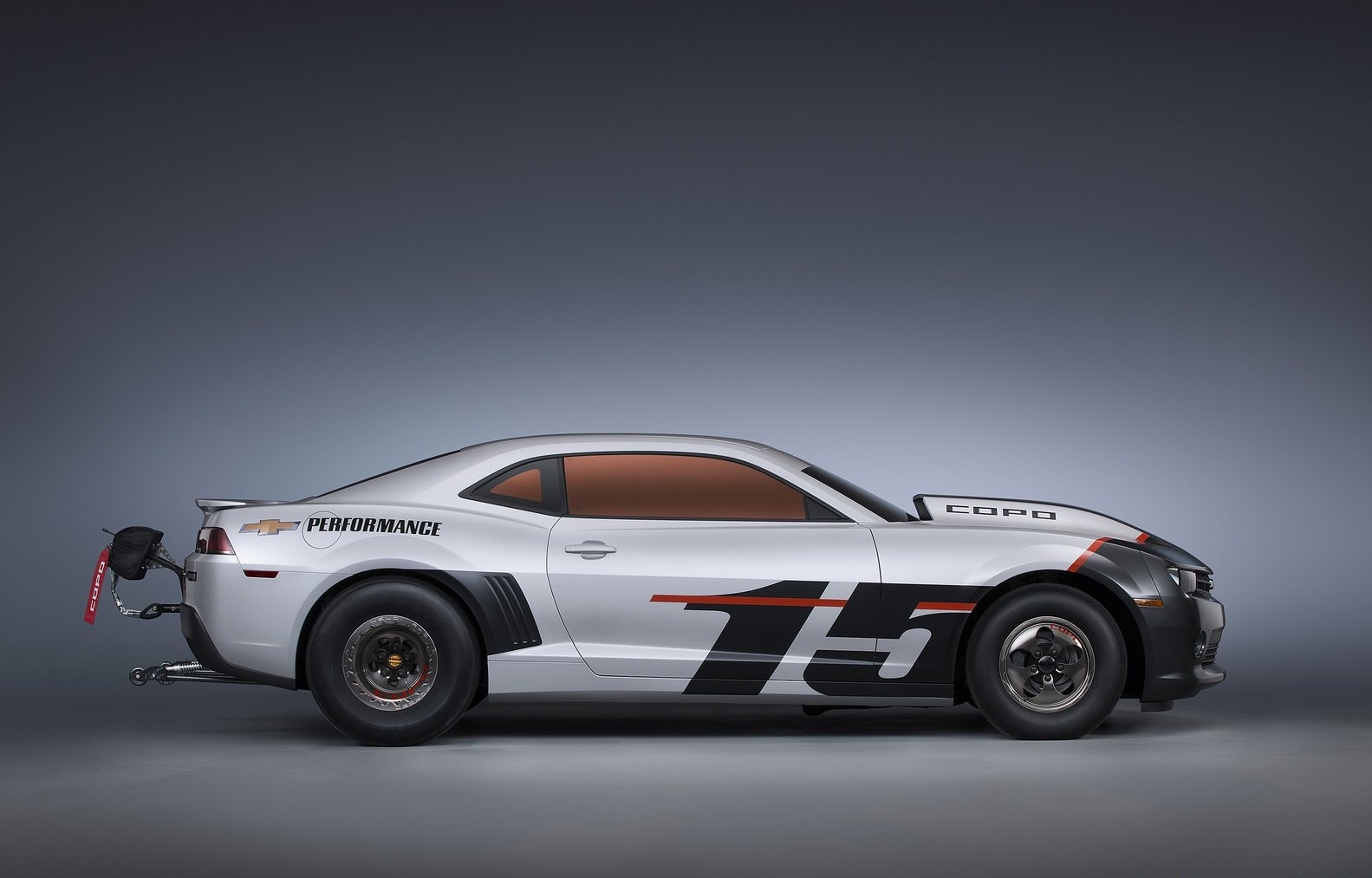 Copo Camaro đầu tiên được trang trí màu trắng chủ đạo cùng phần đầu màu xám, tô điểm vài chi tiết màu cam làm điểm nhấn.