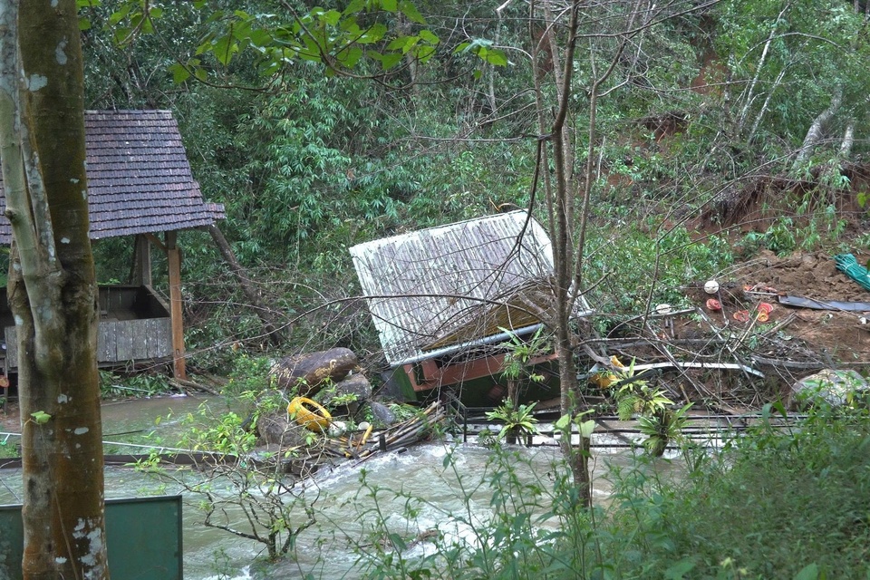 Do ảnh hưởng của mưa lớn kéo dài gây ra điểm sạt lớn, một số hạng mục hạ tầng tại điểm du lịch thác Pa Sỹ ở xã Măng Đen (Quảng Ngãi), bị hư hỏng nghiêm trọng vào ngày 22/11.