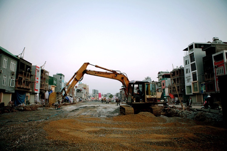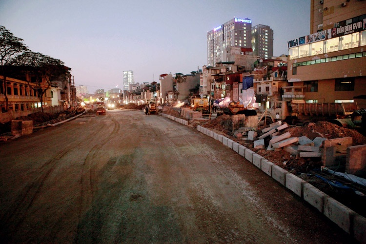 Công ty cổ phần xây dựng Thành An - Binh đoàn 11 - Bộ Quốc Phòng đơn vị thi công đoạn đường Xã Đàn - Hoàng Cầu, sau khi nhận được mặt bằng đã huy động hơn 200 công nhân với gần 50 đầu phương tiện, máy móc, thi công 3 ca liên tục để kịp tiến độ thông xe vào cuối tháng 12/2013.
