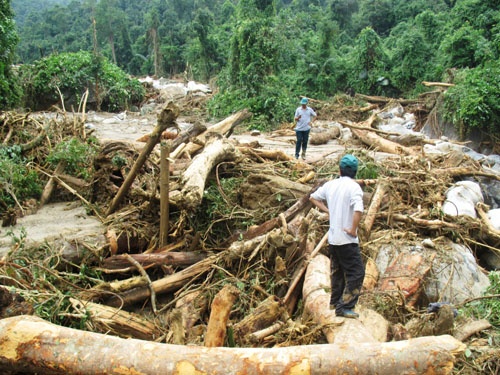 Tại hiện trường, vùng núi bị sạt lở kéo dài hơn 1km, với bề rộng hơn 50m. Lán trại của 4 nạn nhân được xác định cách nơi tìm thấy 3 thi thể đến hơn 500m. Lực lượng cứu hộ đã phải bới từng hốc đá, cắt từng cây gỗ lớn để tìm thi thể ông Tính.