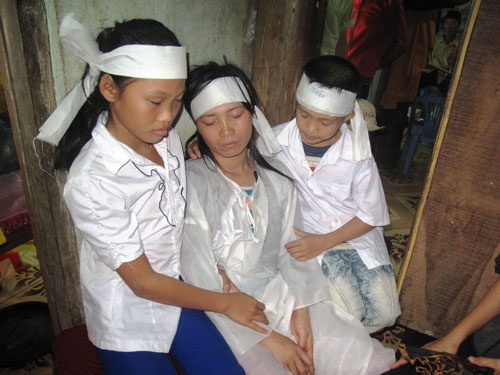 Tại nhà ông Trương Quốc Công, bà Huỳnh Thị Thao (vợ ông Công) gào khóc bên quan tài. Cháu lớn Trương Quốc Danh (học sinh lớp 6) gục đầu vào quan tài cha, còn cháu nhỏ Trương Thị Thu Thảo (học mẫu giáo) chưa hiểu mọi chuyện, cứ gọi “Ba ơi, dậy đi” khiến mọi người đến viếng không cầm được nước mắt. Trong khi đó, tại ngôi nhà nhỏ ông Nghĩa, bà Đàm Thị Thu (vợ ông Nghĩa) liên tục ngất xỉu, 2 con Phạm Thị Thu Thảo và Phạm Ngọc Thiên phải đỡ mẹ.