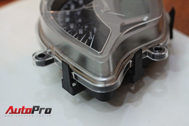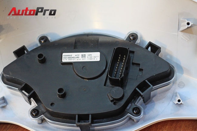 | Mặt sau đồng hồ xe, không còn dây công-tơ-mét, chỉ có jack cắm điện tử. |