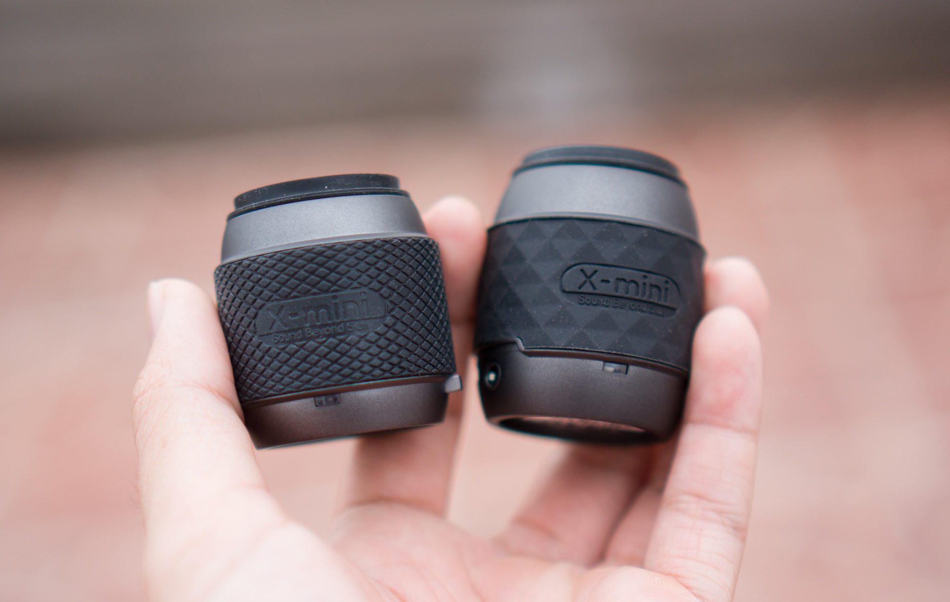 | Cả hai đều có nắp cao su che đậy mặt loa. Chiếc X-Mini thế hệ trước đó dùng nắp nhựa. |