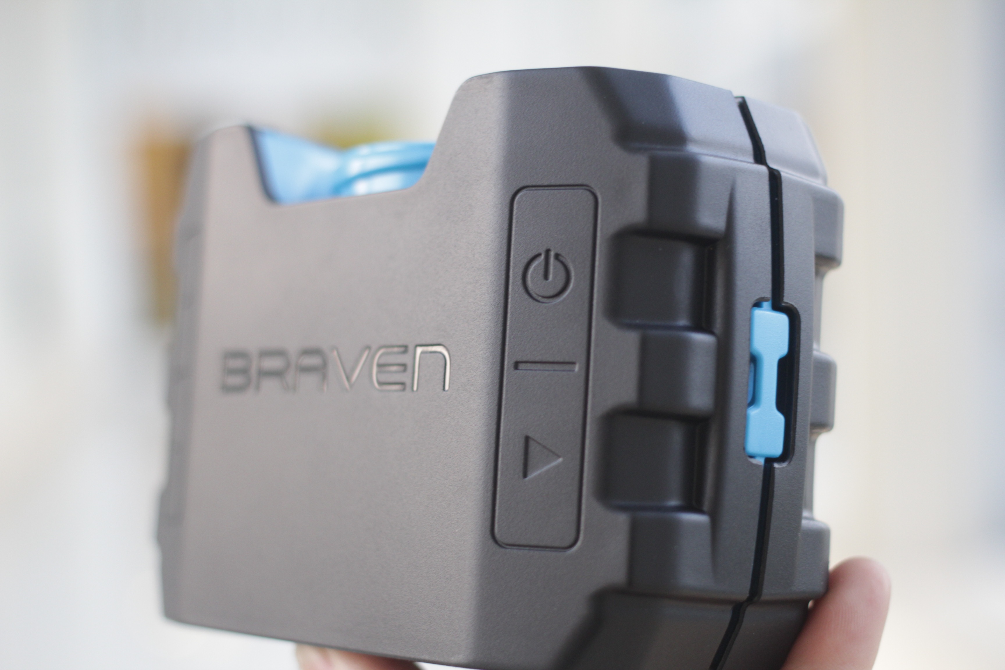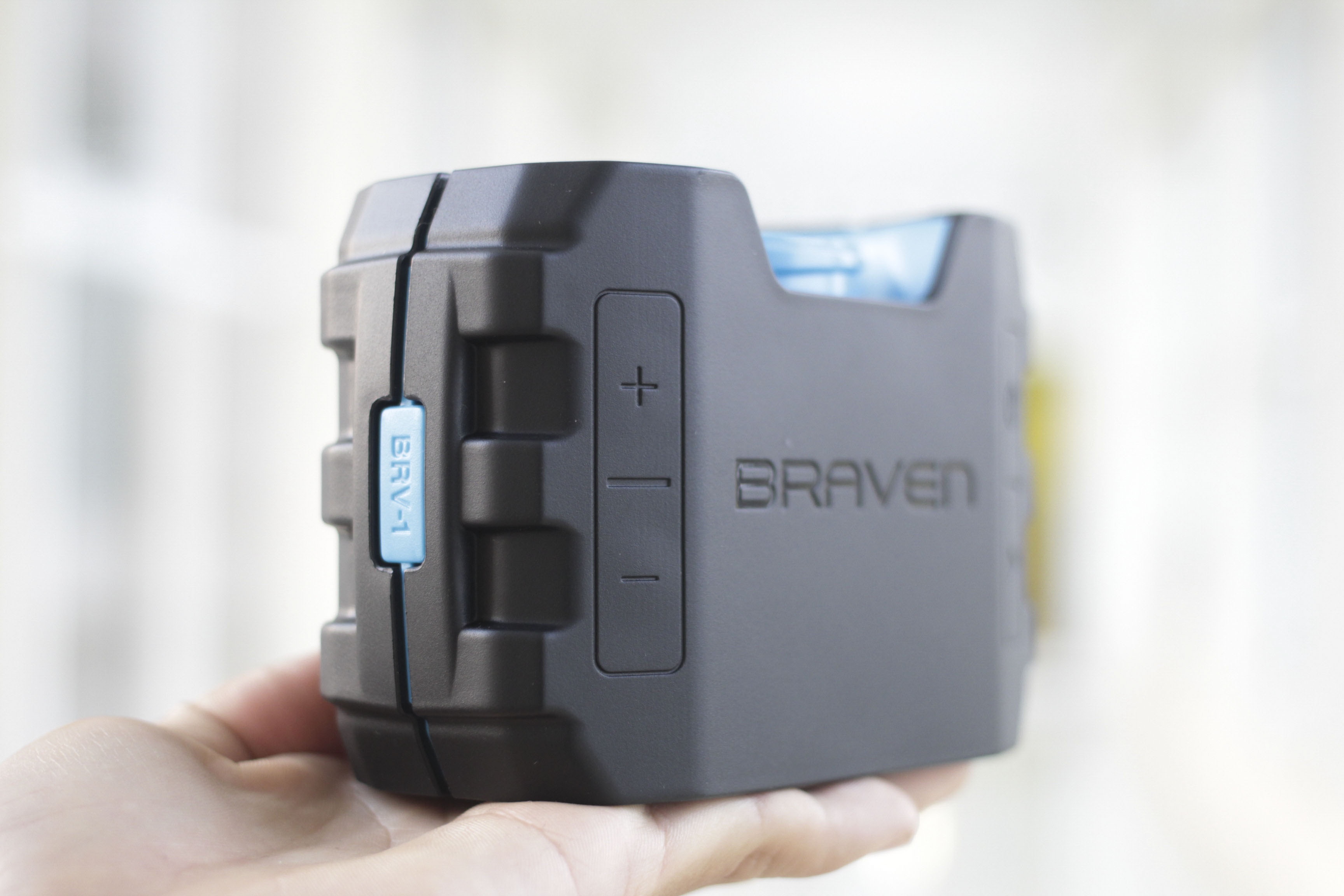 | Braven BRV-1 có thiết kế như bình nước trong quân đội. Nó được bảo vệ bằng khung nhôm cứng cáp, cao su bên ngoài chống va chạm. Model này đạt tiêu chuẩn IP 67, người dùng có thể dìm loa xuống nước trong 30 phút ở độ sâu 1 m. |