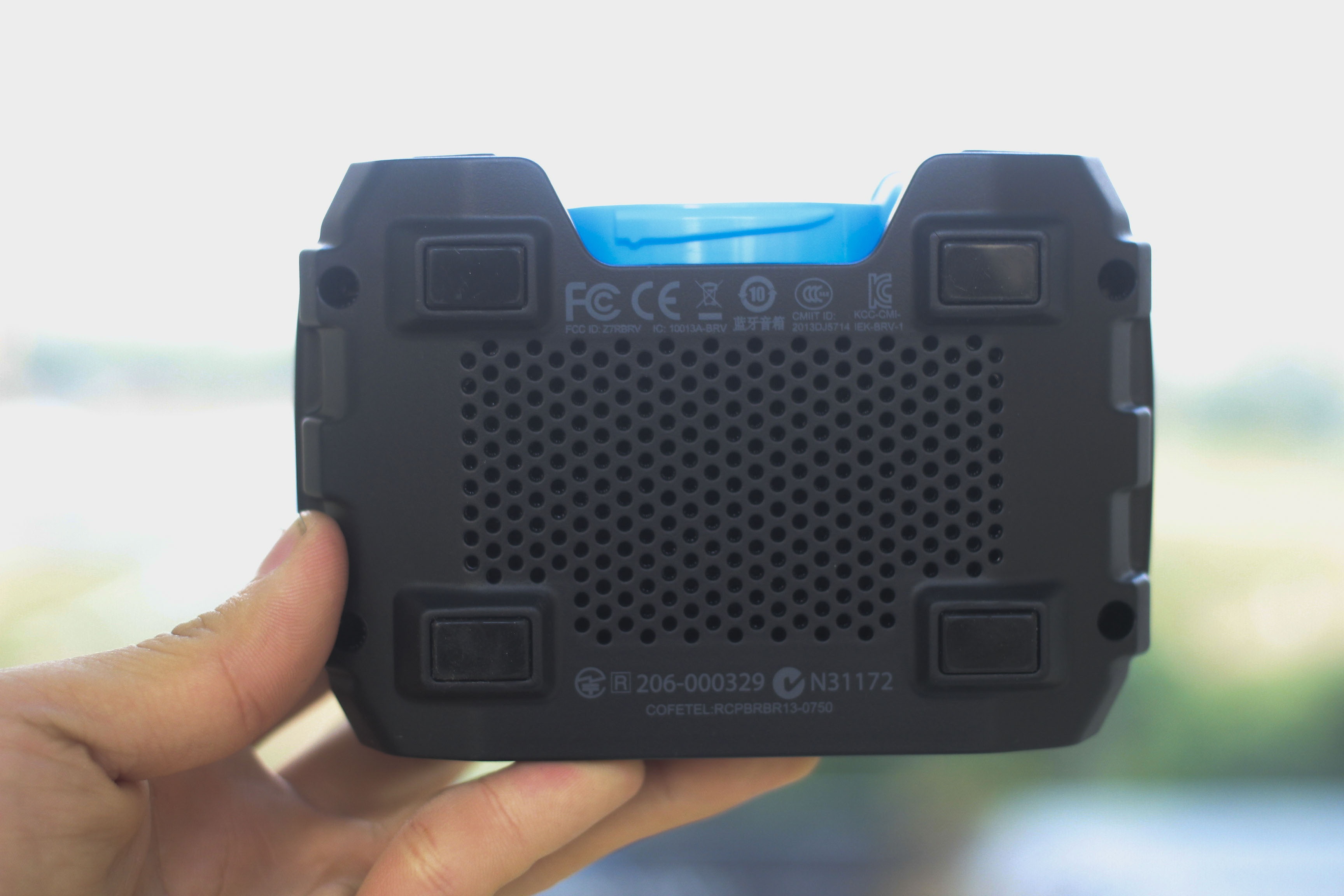 | Khi mở gioăng chống nước, người dùng có thể chọn các nút điều khiển và cổng giao tiếp. Theo đó, loa sở hữu nút xem dung lượng pin, reset để trở về thiết lập mặc định, cổng sạc microUSB với dòng vào 5V-1A, chuẩn USB thường có thể dùng như sạc pin dự phòng cho các thiết bị khác và ngõ vào âm thanh 3,5 mm. |