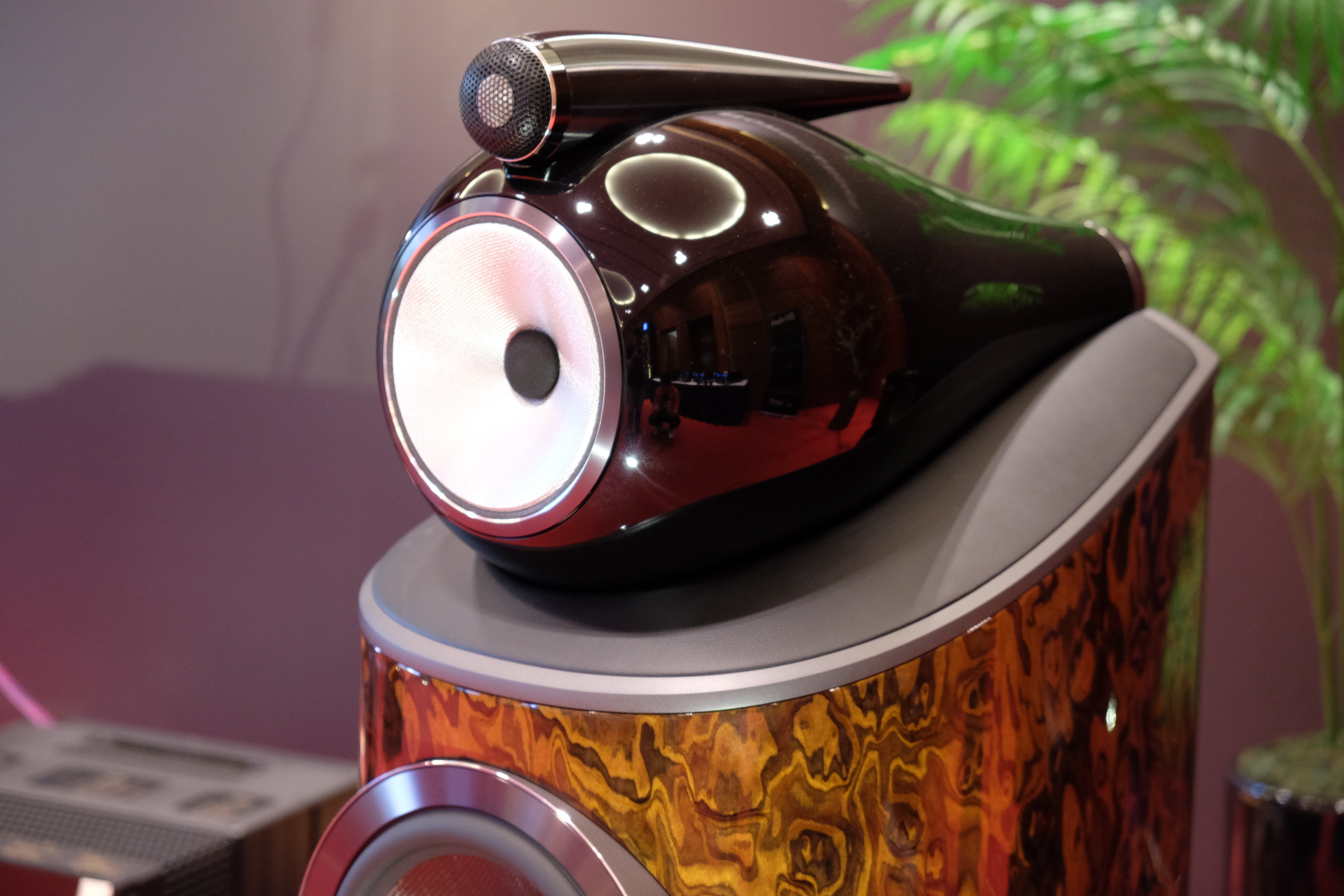 | Mẫu loa B&W 801 D4 Signature, phiên bản màu vân gỗ, của Bowers & Wilkins có giá khoảng 1 tỷ đồng. Củ loa tweeter phát dải tần cao sử dụng công nghệ màng vòm kim cương. |