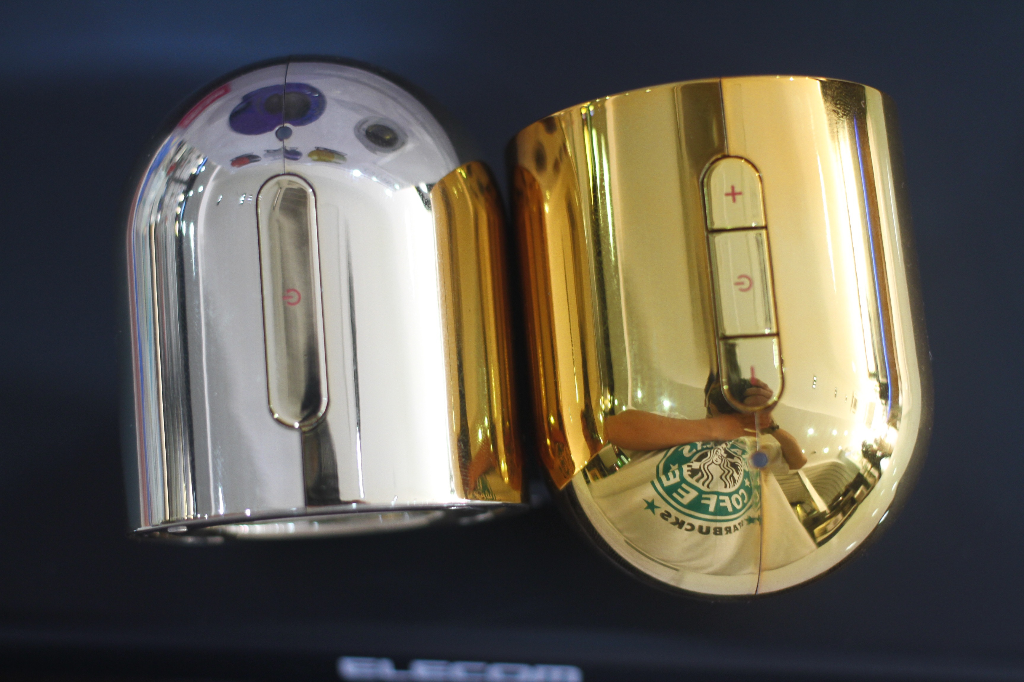 | Elecom Capsule chia ra thành loa chính và phụ. Phần màu vàng là loa chính, nó có thể hoạt động độc lập như một loa Bluetooth, phần màu trắng là loa phụ. |