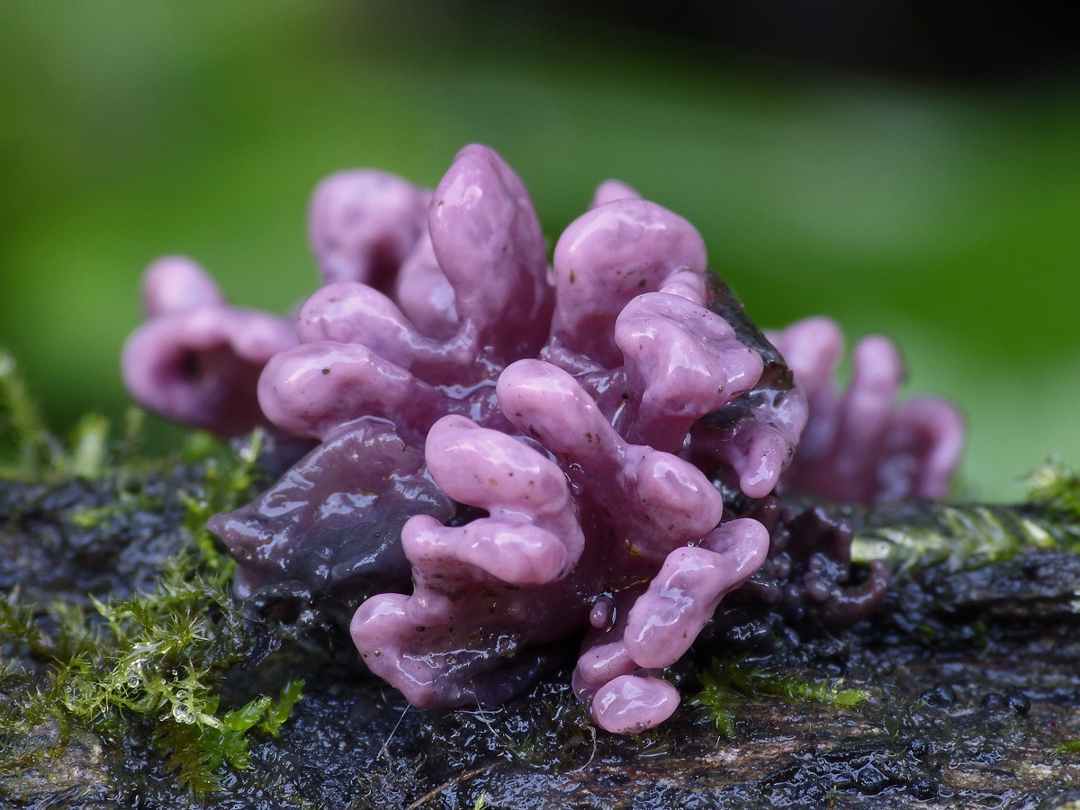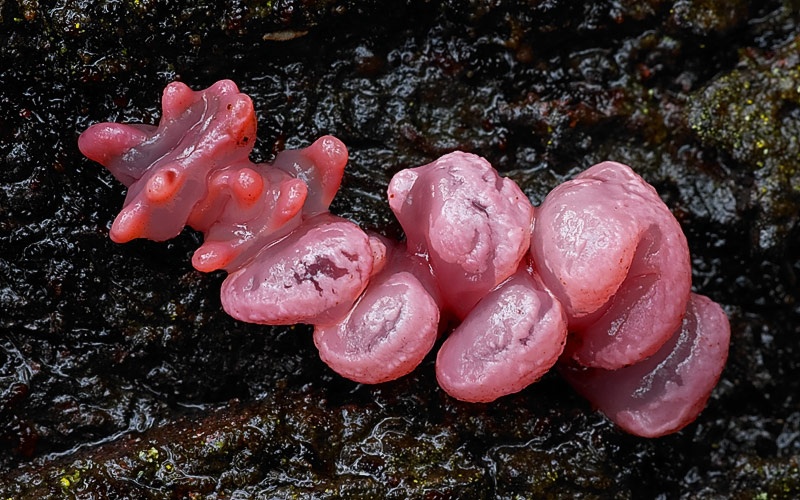 | Màu hồng nhạt và màu tím là hai màu sắc chủ đạo của nấm Ascocoryne sarcoides. Sương hoặc mưa giúp làm ẩm bề mặt cơ thể, giúp chúng phát triển nhanh hơn. Nấm ruột non là loài sinh sản vô tính, nghĩa là chúng sẽ tự sản xuất các bào tử. Ảnh: Nature Photos |