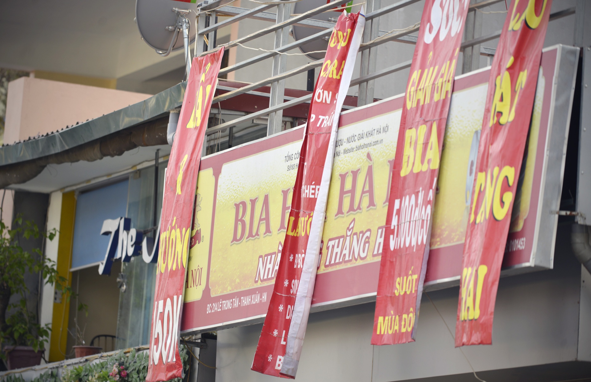 | "Bia hơi Hà Nội không thể là nền xanh chữ trắng như các cửa hàng khác. Đây là biển quảng cáo do Công ty bia Hà Nội cung cấp, biển cũ không thích hợp nên chúng tôi tháo bỏ", chủ quán bia này kể. |