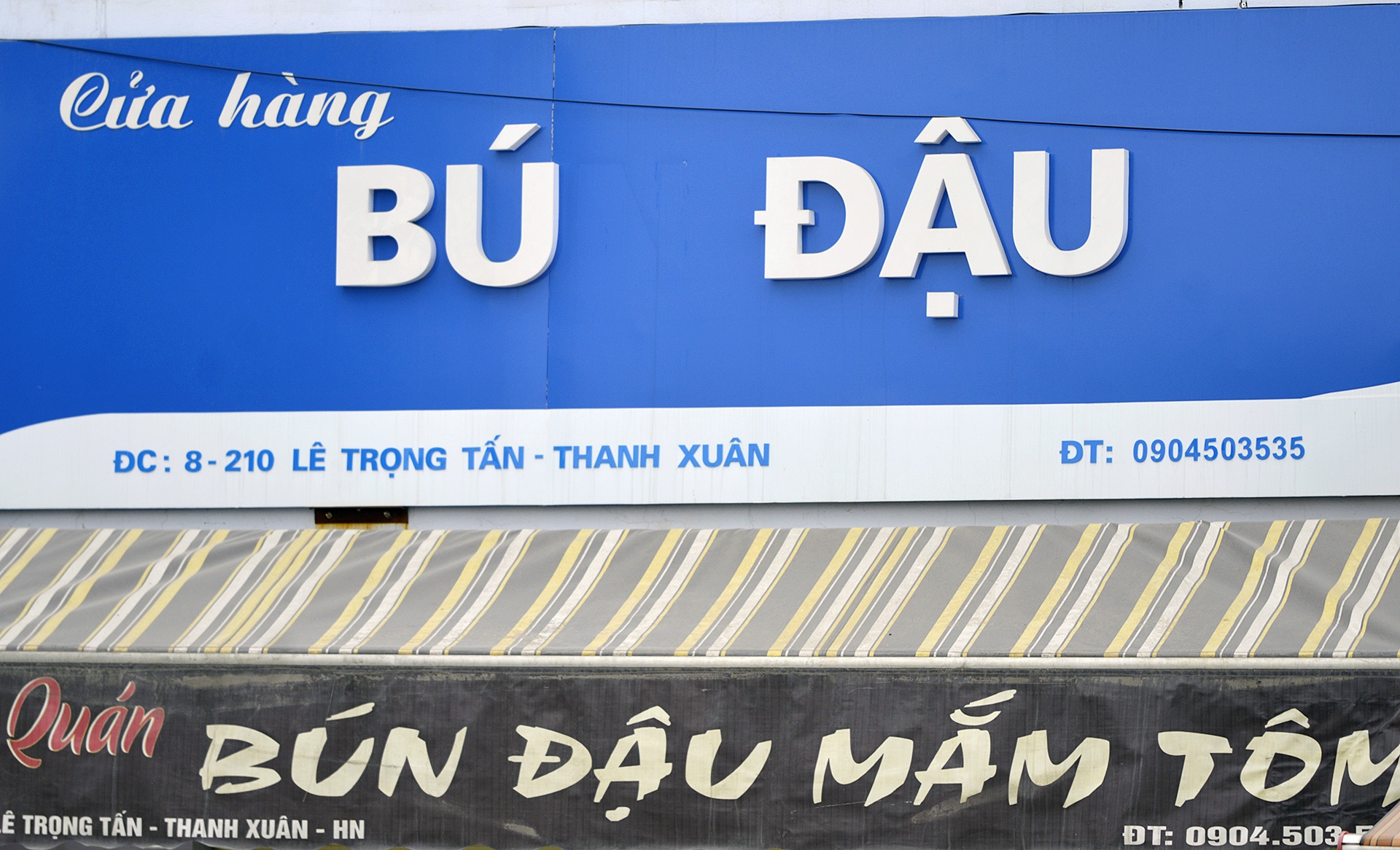 | Hàng bún đậu mắm tôm thiết kế thêm mái hiên di động. Trước đây nhiều khách đi lướt qua không nhìn kỹ và không thể biết đó là hàng ăn.