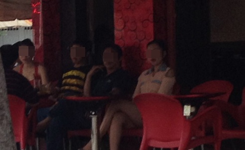 15h, chúng tôi bước vào một quán, chỉ có phòng bên trong là mát mẻ với máy lạnh chạy rì rào cùng vài vị khách trốn nóng. Họ đang xem phim trên màn hình lớn, giống như trong rạp thu nhỏ. Quán này không có gì đặc biệt ngoại trừ ba nữ nhân viên đều quê miền Tây, mặc váy khoét phía sau, để hở thân hình trắng trẻo. Các cô đều mang guốc cao từ 15 đến 20 cm.