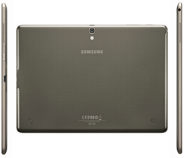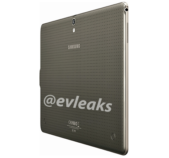 Tài khoản @evleaks vừa đăng những hình ảnh báo chí mới nhất cho thấy Galaxy Tab S 10.5 sẽ mang thiết kế nhựa có đục lỗ li ti từng gây tranh cãi ở mặt sau tương tự Galaxy S5. Thiết bị này cũng được cho sẽ có độ mỏng lý tưởng, được cài sẵn Android 4.4.2 KitKat cùng giao diện Magazine UX mới nhất của Samsung.